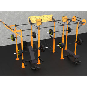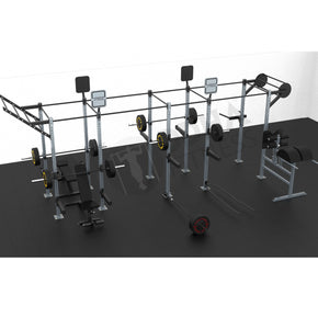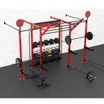 The Yoddha Fitness Wall Mounted CrossFit Rig with Storage - 24 Ft range utilize your wall in place of one side of the Rig to help keep the center of your gym open. Wall-Mounted Rigs designed for gym owners who demand both durability and efficiency. These rigs bring together unmatched functionality, space-saving design, and robust construction, making them an ideal choice for high-performance gyms. This Rig offers safety and stability for various exercises, such as Multiple squat station, Adjustable bench presses Station, Storages and pull-ups for 100 of other Various Workouts. This set-up is ideal for commercial gyms/weight rooms, Home Gym, CrossFit Box, CrossFit or Functional Training Studios, Any Training Academy, Any Mixed Martial Training Centre , or Any Sports Training Schools.