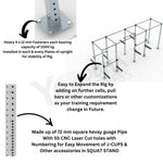 Yoddha Freestanding CrossFit and Functional Rig Featuring a robust steel construction, this Rig offers safety and stability for various exercises, such as Multiple squat station, Adjustable bench presses Station, and pull-ups and 100 of other Various Workouts. This set-up is ideal for commercial gyms/weight rooms, CrossFit Box, CrossFit or Functional Training Studios, Any Training Academy, Any Mixed Martial Training Centre , or Any Sports Training Schools.
