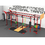 The Yoddha Fitness Functional Training Rig in length is a versatile and durable strength training solution, designed to withstand heavy use for commercial gyms, Outdoor Gyms or space, Sports Academy or any Box or MMA Boxing Gym. Yoddha Functional Rig Featuring a robust steel construction, this Rig offers safety and stability for various exercises, such as Multiple squat station, Adjustable bench presses Station, and pull-ups Monkey Bar, Ladder workout, dipping, peg board Climbing , leg raise and various other workouts.