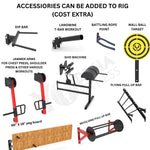 10. Additional Accessories (Cost Extra) :- You can add additional Accessories to Make more useful and increase unlimited workout in rigs like - Dip bar for Dipping Purpose, Landmine for T-bar Workout, Jammer Arms for Chest press , shoulder press and many more, Battle Rope Point for Battle Rope in Rig, Peg Board for Peg Boarding, Flying Pull up bar, Revolving pull up bar, wall ball target for Med Ball Workouts & Many More Please Check List Below for Additional Attachments.